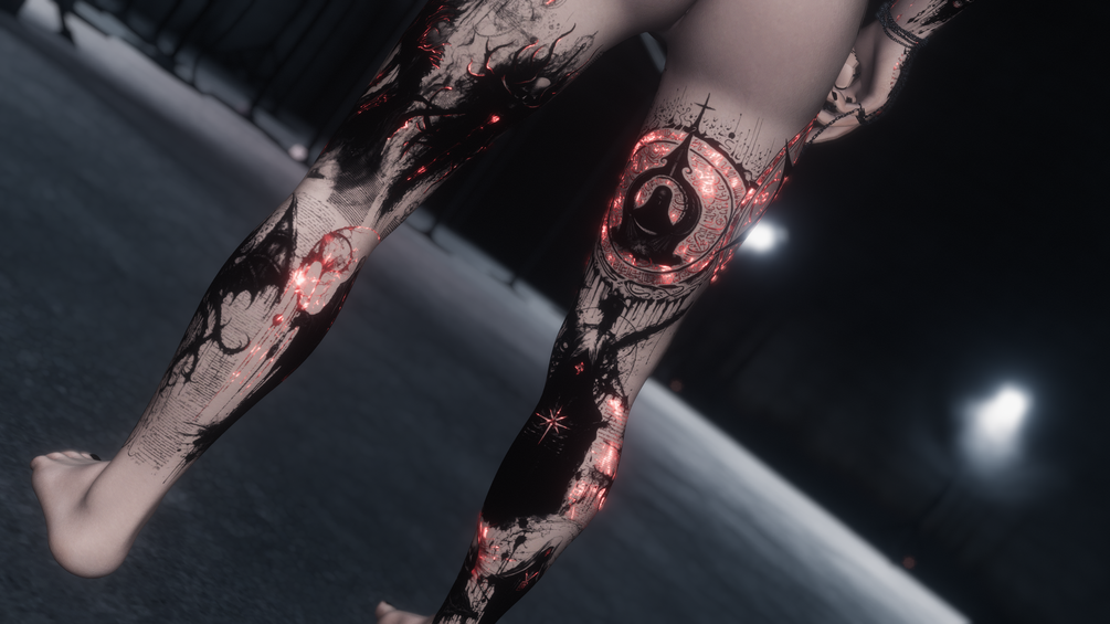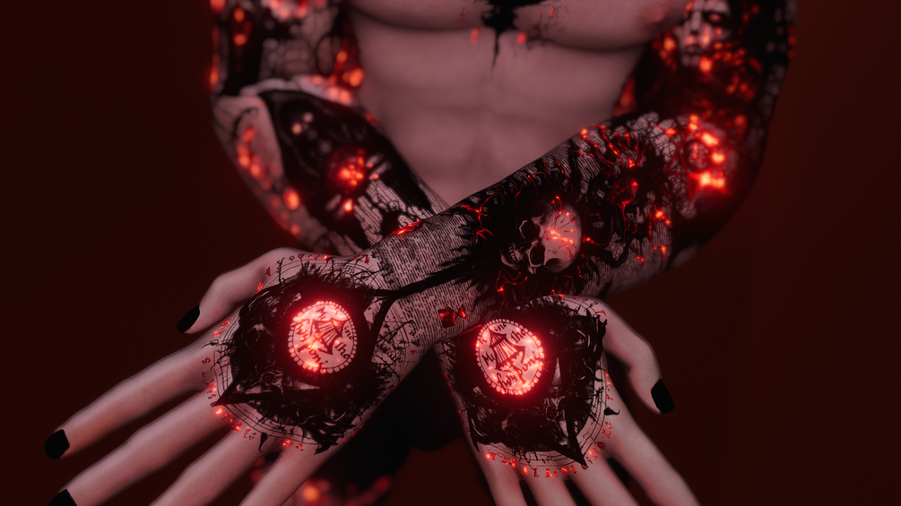 Full-Body Tattoo Set for male avatars inspired by ancient Germanic hermeticism and black magic with a heavy gothic/demonic aesthetic.