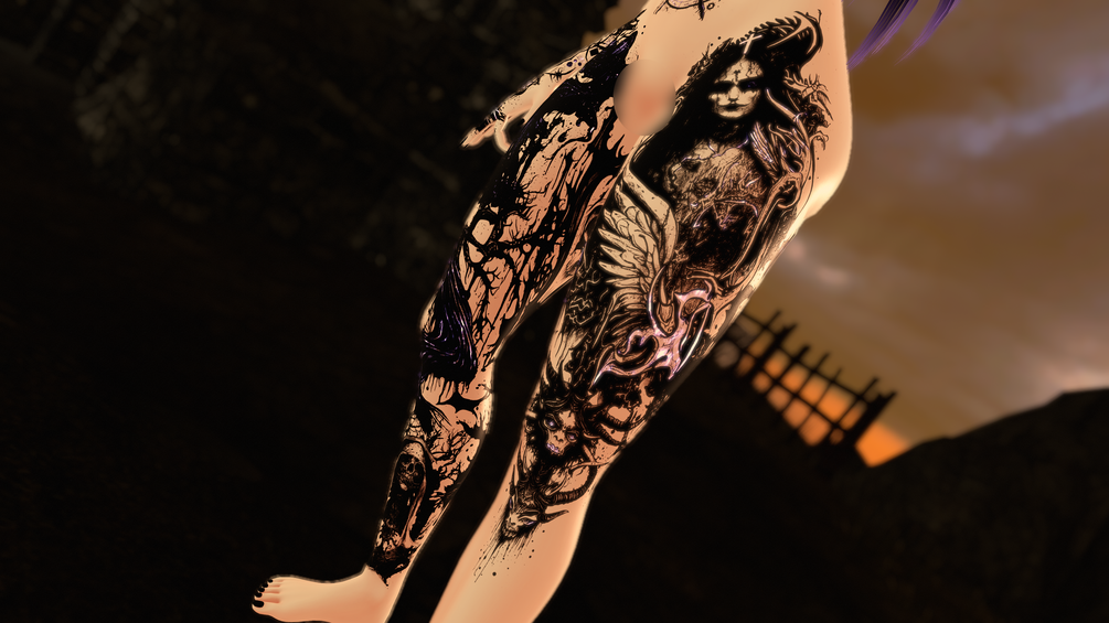 Full-Body Tattoo Set for female avatars based on a satanic witchy gothic style.