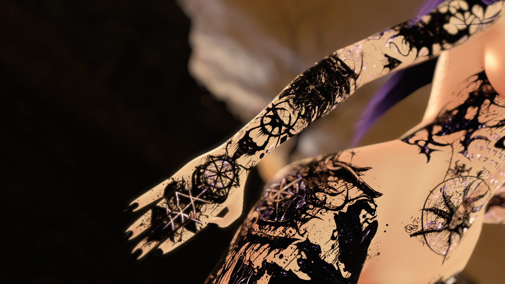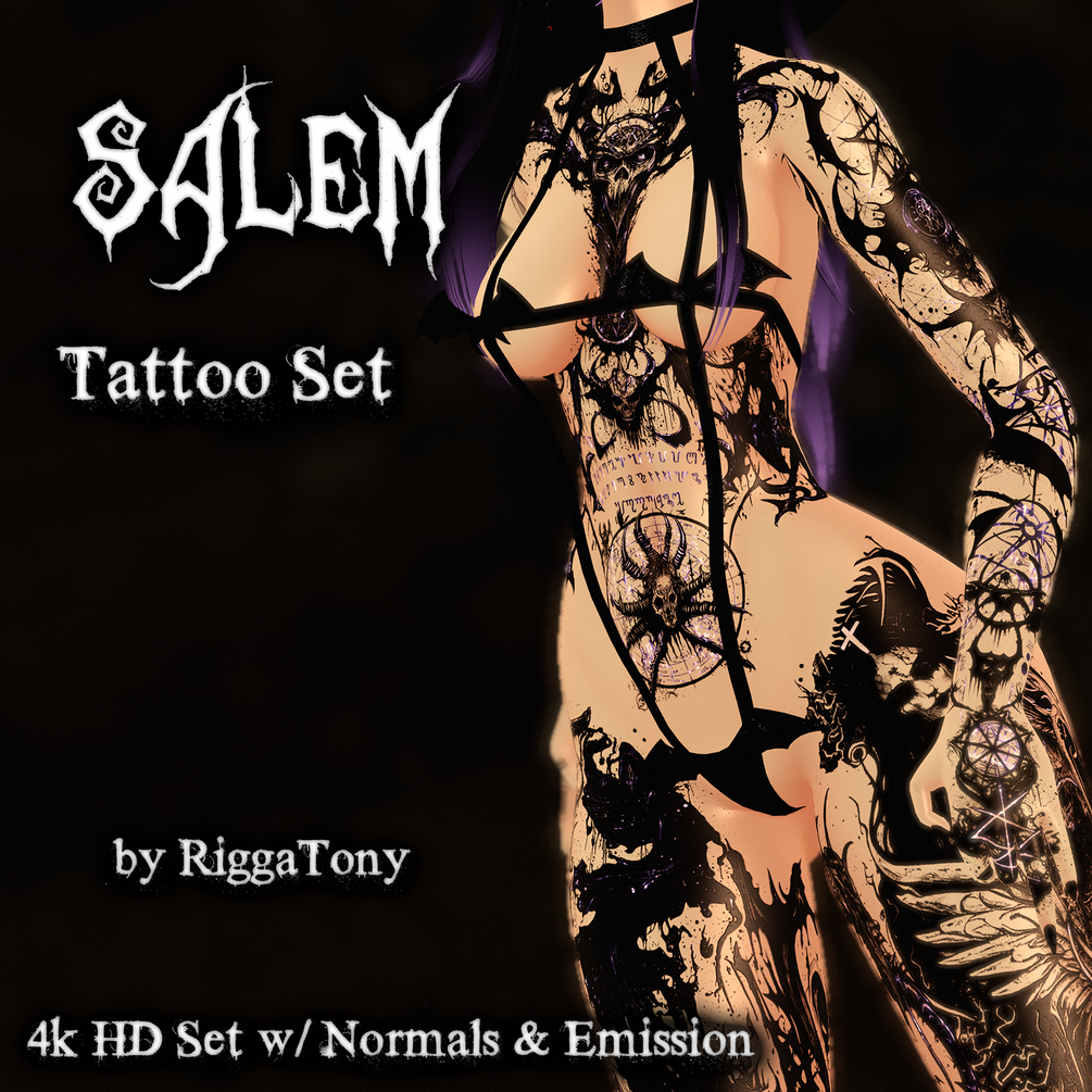 Full-Body Tattoo Set for female avatars based on a satanic witchy gothic style.